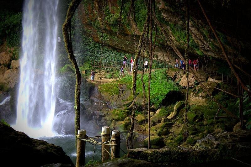 descubrir una serie de caídas escalonadas y pozas naturales contenidas por diques calcáreos llamados "gours", a lo largo del camino, existen áreas designadas para nadar donde las corrientes son más suaves, ideales para refrescarse en las aguas cristalinas rodeadas de una selva exuberante que alberga especies como el mono aullador, tucanes y guacamayas.
