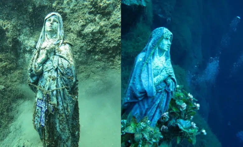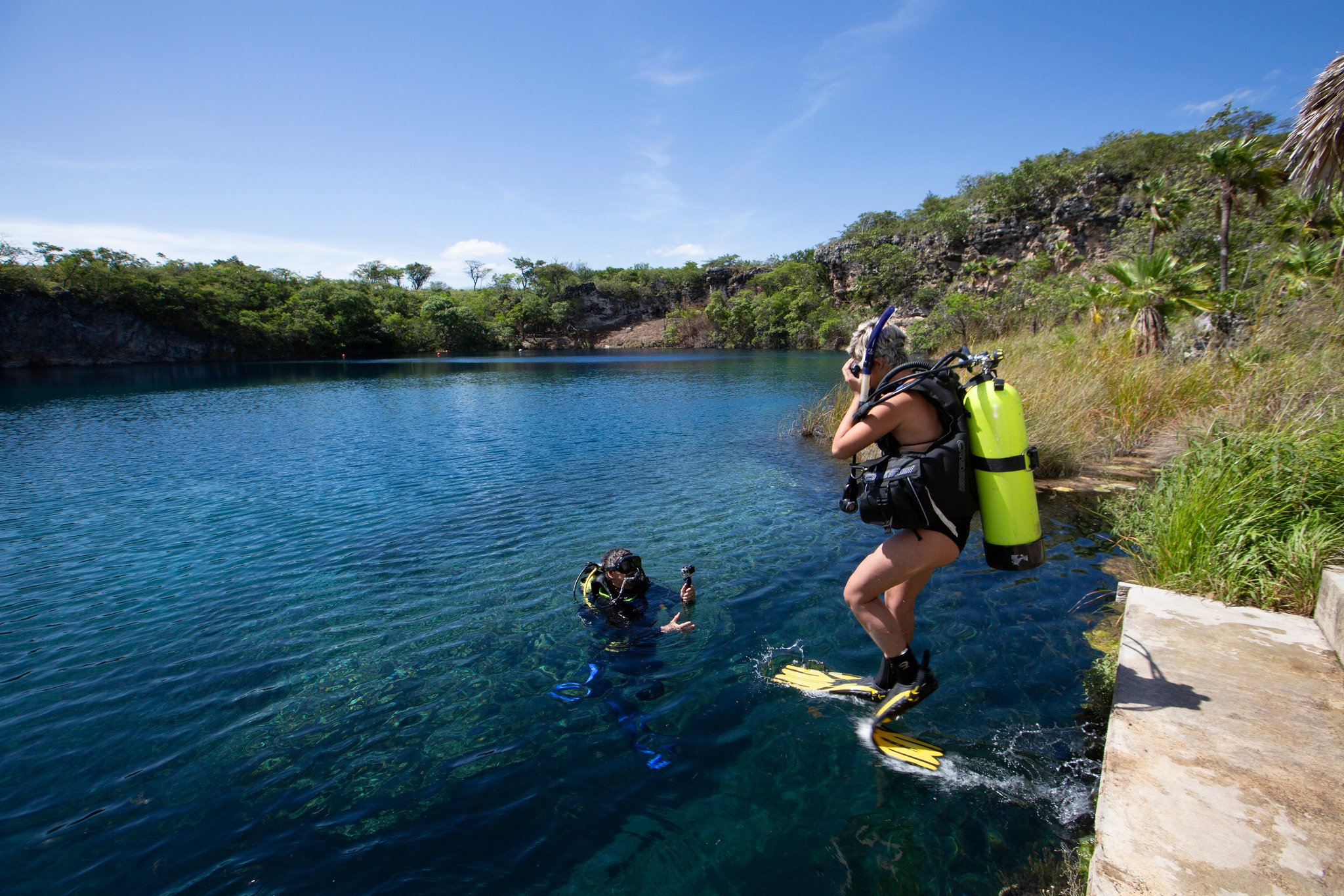 Lo que realmente hace famoso a este cenote es su "museo" bajo el agua, lo que lo convierte en el destino predilecto para el buceo en Chiapas. En sus profundidades, los buzos pueden encontrar una serie de curiosidades que le añaden un aire surrealista: una estatua de la Virgen de los Dolores sumergida a unos 15 metros, un altar, una pequeña cueva y depósitos de azufre que parecen nubes blancas atrapadas en el fondo. Además, el cenote alberga árboles petrificados que se mantienen erguidos bajo el agua, creando un paisaje subacuático que parece sacado de un cuento de fantasía. Para quienes prefieren quedarse en la superficie, la temperatura del agua es templada (alrededor de 24°C), ideal para practicar snorkel o simplemente nadar rodeado de un entorno de rocas y vegetación semiárida.