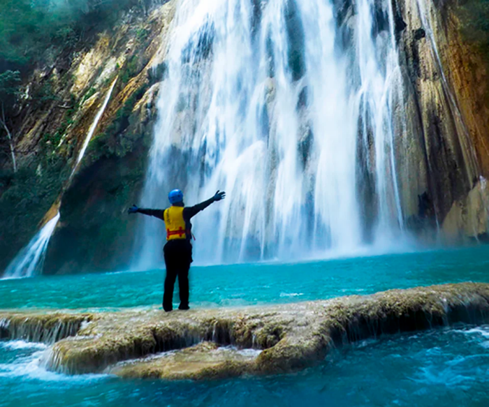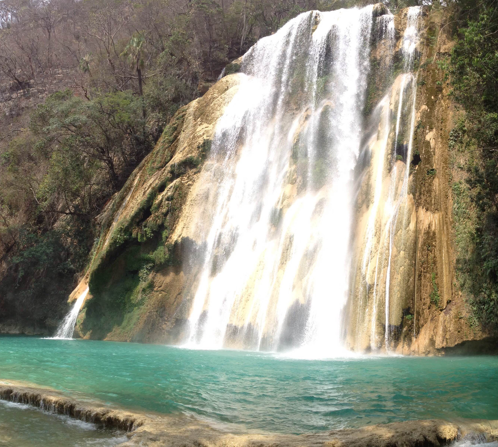 La recompensa es un escenario natural de una belleza sobrecogedora: tres caídas de agua de diferentes alturas (la mayor de unos 60 metros) que se precipitan sobre pozas profundas y cristalinas.