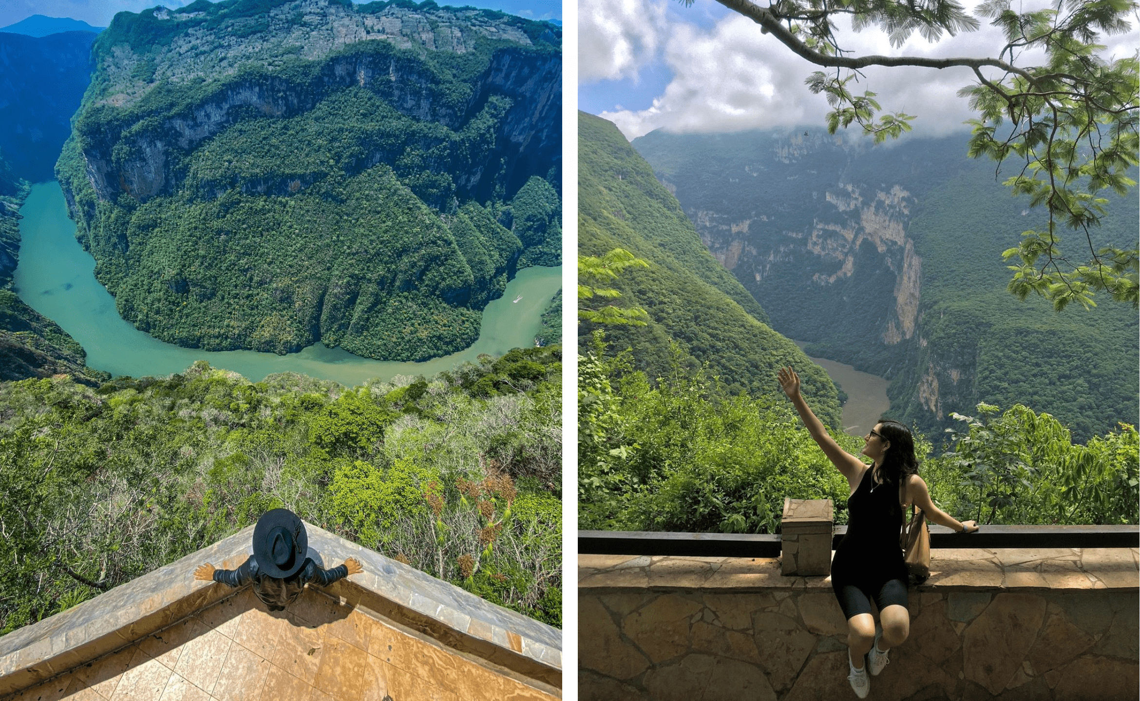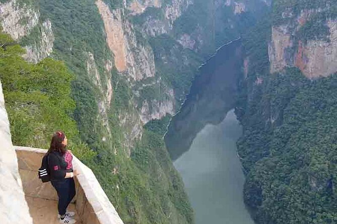 altura desde abajo, la ruta terrestre por los cinco miradores oficiales revela la magnitud real del abismo, permitiendo observar las paredes de piedra caliza que caen casi 1,000 metros de forma vertical. Es un viaje visual que transita por diferentes microclimas, desde la selva baja en la base hasta bosques de encino en las partes más altas del Parque Nacional.