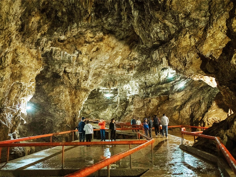 Este extenso bosque de coníferas es famoso por sus dos sistemas de cuevas: la gruta principal, que cuenta con un andador iluminado de más de 700 metros donde se aprecian caprichosas formaciones de estalactitas y estalagmitas, con una segunda sección para los más aventureros y la segunda cueva cerca de las resbaladillas. El entorno natural de pinos y neblina crea el escenario perfecto para un día de desconexión total, donde el aire puro y el aroma a resina acompañan cada paso.