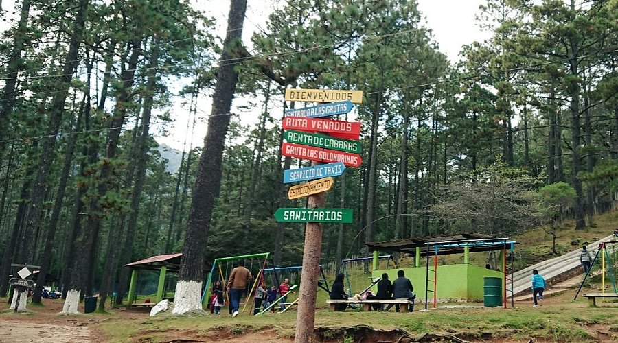 una zona boscosa y alta, la temperatura dentro de las grutas y bajo los pinos es fría, incluso en días soleados. Lleva una buena chamarra o sudadera.