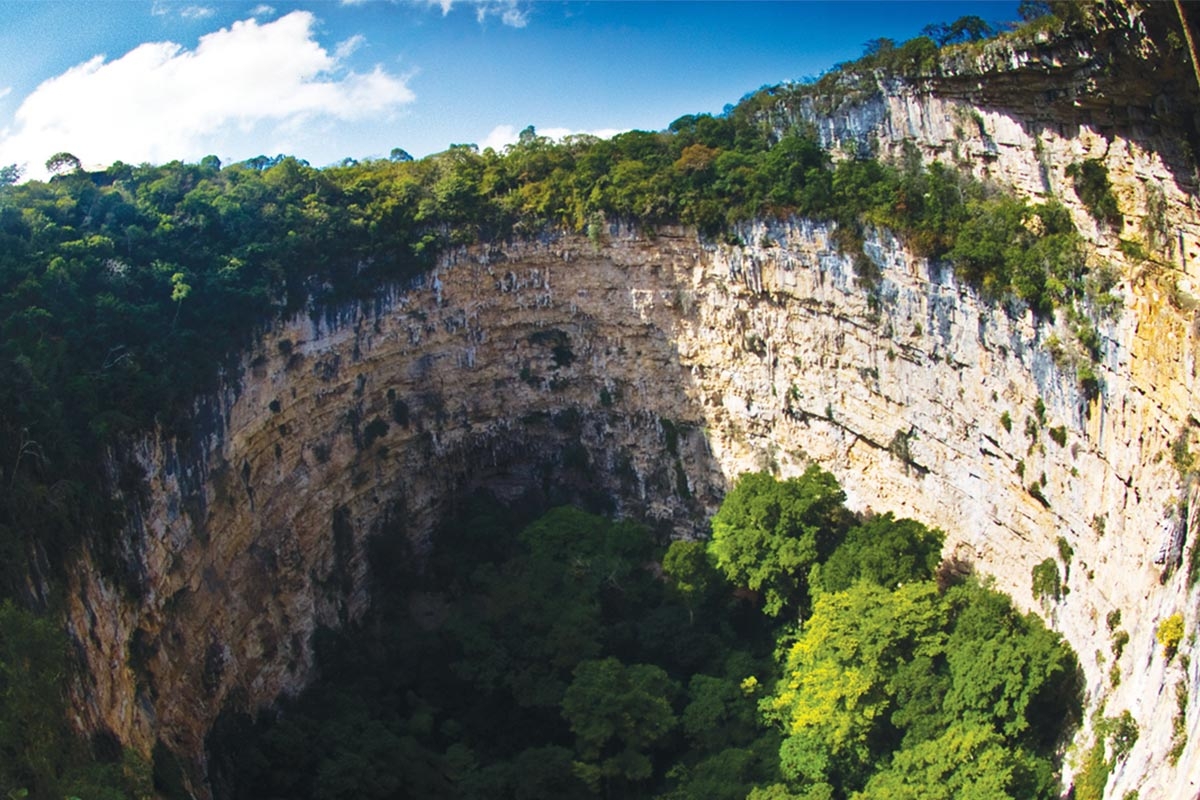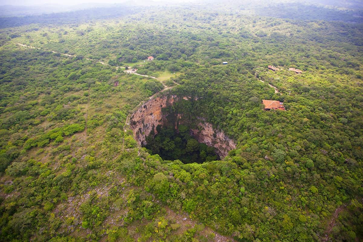 Se trata de un hundimiento de la corteza terrestre, conocido como dolina, que tiene un diámetro de 160 metros y una profundidad vertical de 140 metros, esta gigantesca "taza" de piedra caliza no solo impresiona por sus dimensiones, sino por el ecosistema único que alberga en su fondo, donde un bosque de selva baja...